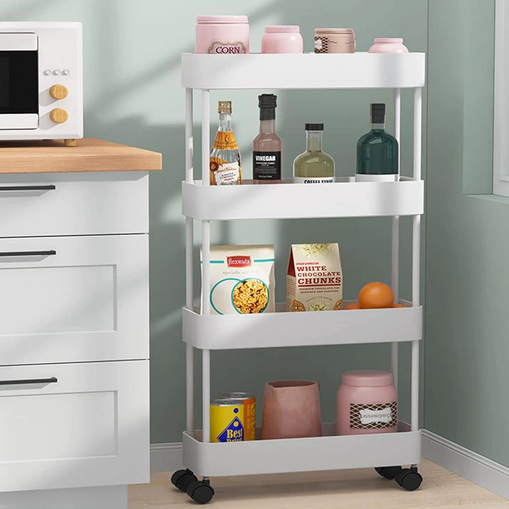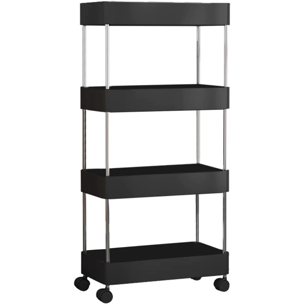 - Organização Eficiente: Com quatro andares estreitos, esta prateleira carrinho auxiliar proporciona uma quantidade generosa de espaço de armazenamento. Organize livros, utensílios de cozinha, produtos de limpeza, artigos de escritório, brinquedos, plantas e muito mais de maneira ordenada e acessível.