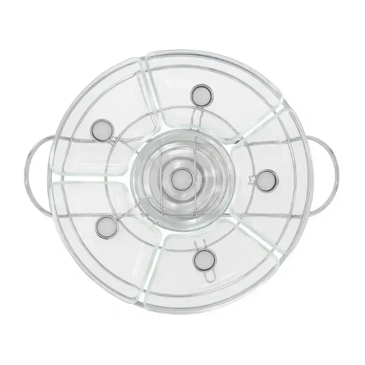 Luxuoso Rechaud Giratório Com 6 Compartimentos Aço Inox E Vidro 52cm + FRETE GRÁTIS